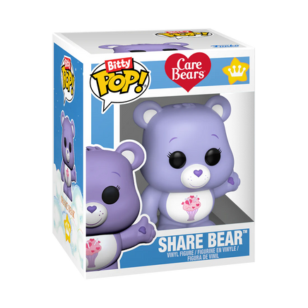 Il mondo dei POP! si fa più grande—e più piccolo—con i collezionabili Bitty POP! Arricchisci la tua collezione dei Care Bears™ con Bitty POP! Ride Share Bear™ e Cloud Mobile™! La figura Bitty POP! è confezionata in una custodia acrilica rigida con base staccabile, che funge anche da supporto. Rimuovi Bitty POP! Share Bear™ dalla custodia per farla sedere sul Bitty POP! Ride Cloud Mobile™! Le figure in vinile misurano circa 2,3 e 3,3 cm di altezza.