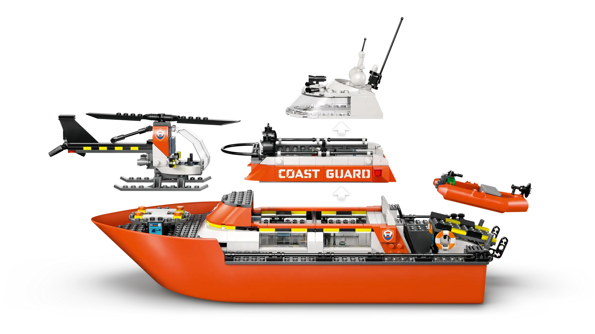 Pronti per missioni di soccorso epiche? Il set LEGO® City Motoscafo di soccorso ed elicottero della Guardia Costiera (60504) trasporta i bambini dai 7 anni in su in avventure oceaniche indimenticabili. Questa barca galleggiante straordinaria presenta ponti rimovibili che rivelano il ponte di controllo, gli alloggi e la cucina—perfetti per esplorare ogni angolo. I piccoli eroi possono lanciare il gommone di soccorso dalla rampa o decollare dall'eliporto con l'elicottero. Con due gommoni aggiuntivi, fiamme LEGO, 5 minifigure e un cane fedele, il set offre infinite possibilità di gioco narrativo. Tutte e 3 le barche galleggiano sull'acqua per un'esperienza di gioco ancora più realistica. Il regalo di compleanno ideale per chi ama l'azione e l'avventura!