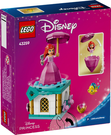 - Kit costruibile Disney Princess: il giocattolo costruibile è dotato di supporto con piattaforma girevole e chiave, una mini-doll di Ariel LEGO® ǀ Disney con un abito a forma di diamante trasformabile e il pesce Flounder LEGO ǀ Disney.