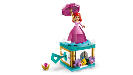 - Giocattolo costruibile coinvolgente: gira la chiave sul supporto per far ruotare la piattaforma e Ariel, quindi riponi la mini-doll LEGO® ǀ Disney all’interno del vestito a “diamante” usando l’ombrello come coperchio