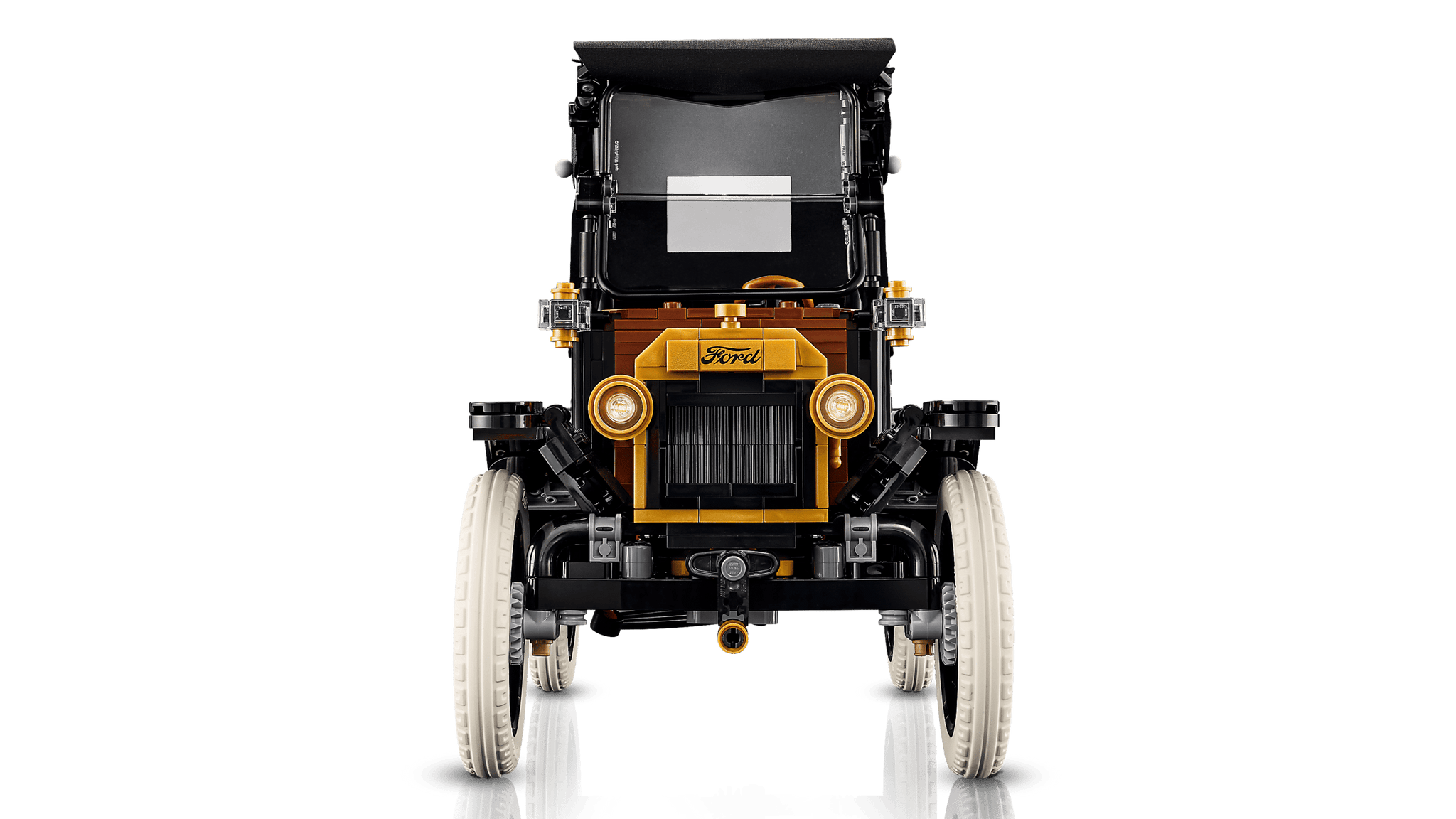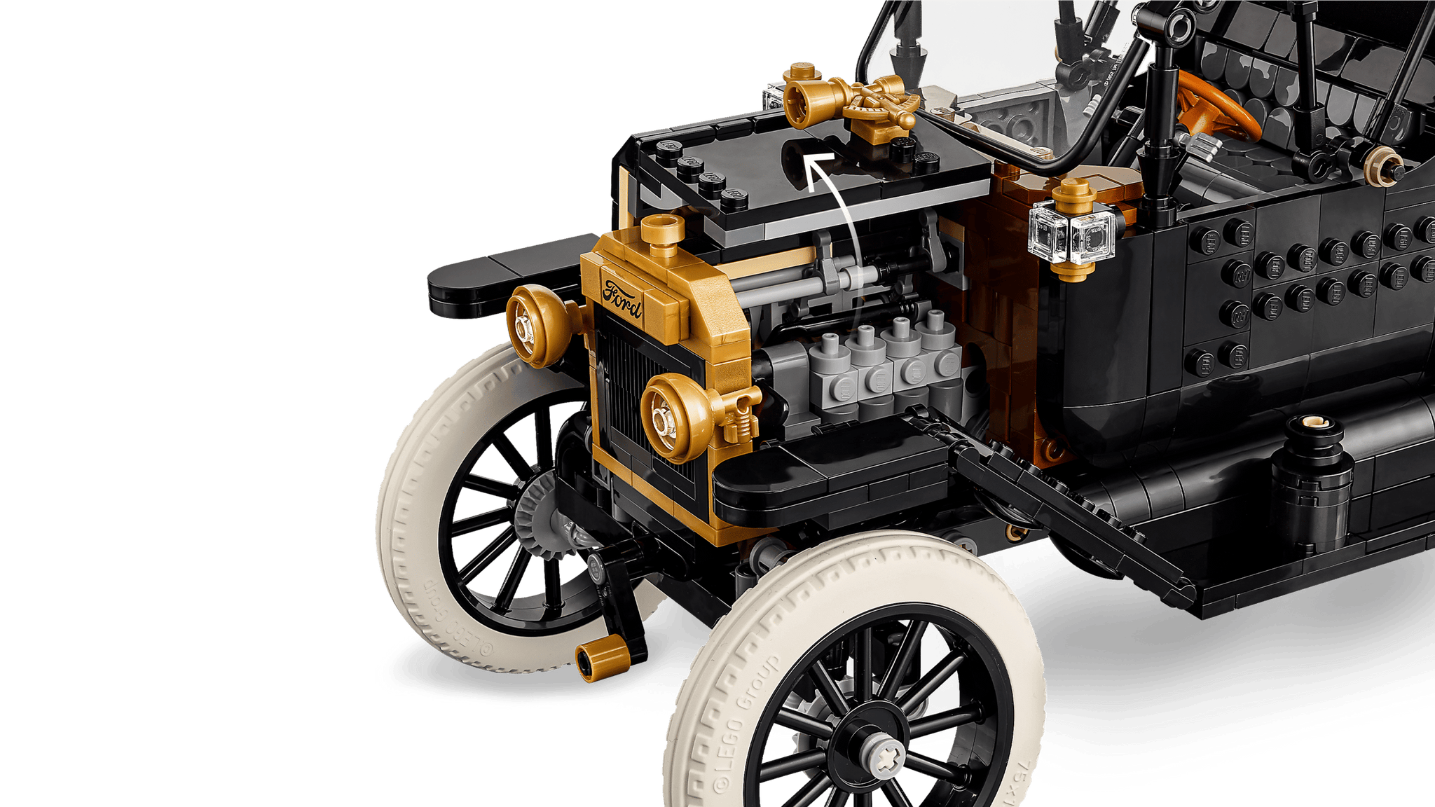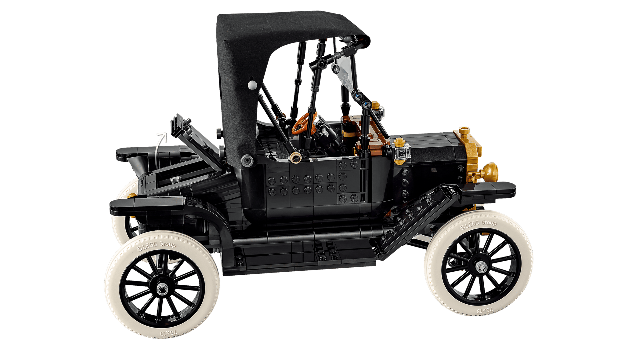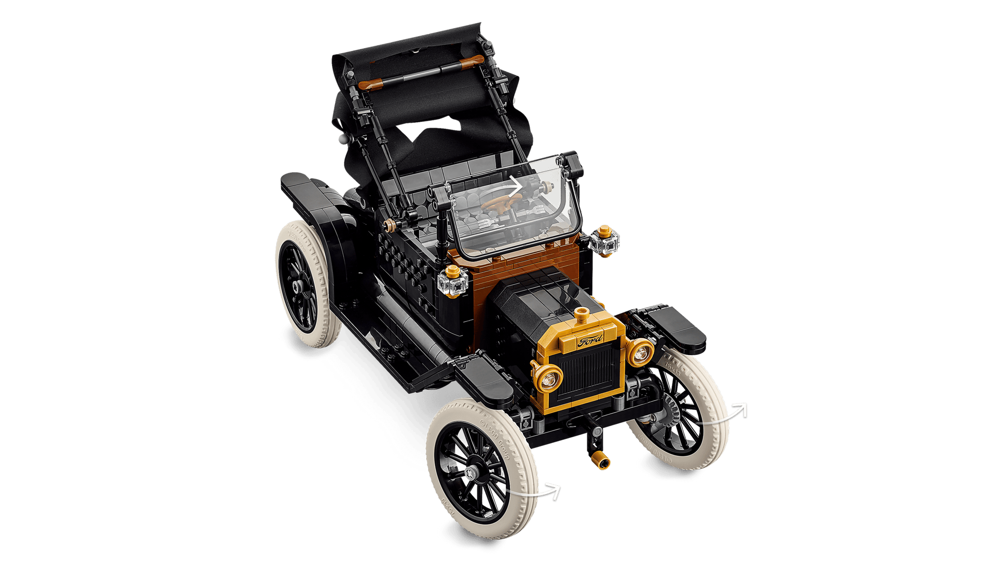 Celebra un capolavoro automobilistico con il kit LEGO® Icons Ford Model T (11376). Questo set per adulti ricrea fedelmente l'iconica auto del 1910 con dettagli straordinari: tetto in tessuto pieghevole, parabrezza e porta passeggeri apribili, bagagliaio funzionante e abitacolo intricato con sterzo mobile. Scopri il serbatoio sollevando il sedile, apri i pannelli del cofano per esplorare il motore e aziona la manovella per far girare la ventola. Con carrozzeria nera elegante, accenti dorati e cerchi a raggi con pneumatici bianchi in gomma, questo modello vintage è il pezzo da collezione perfetto per chi ama l'automobilismo classico. Un'opera d'arte da esporre con orgoglio.