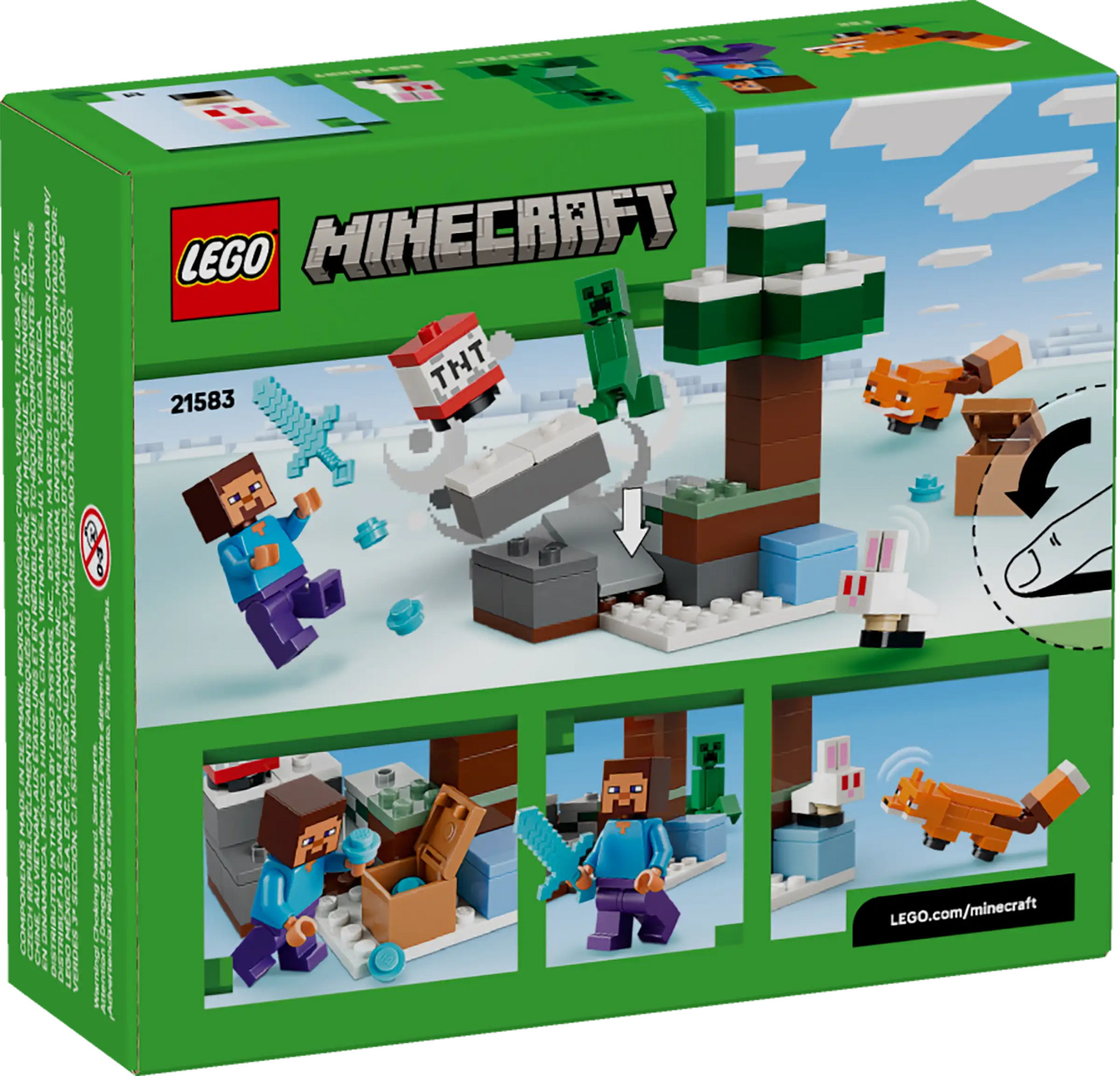 Entra nel bioma innevato di Minecraft con il set LEGO 21583! Costruisci avventure epiche insieme a Steve, affronta il Creeper con la sua spada di diamante e scopri la fauna selvatica della taiga con una volpe e un coniglietto. Perfetto per i giovani costruttori dai 6 anni in su che amano il gaming, questo set combina l'azione di battaglia, la caccia al tesoro e il divertimento creativo di Minecraft in un'unica esperienza LEGO indimenticabile.