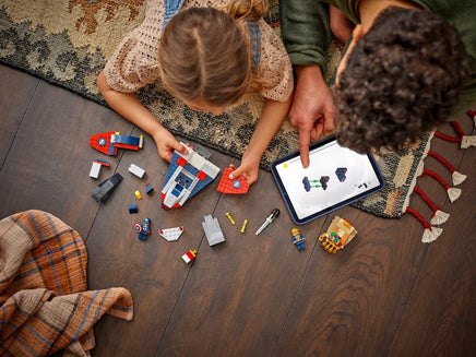 Questo set build-and-play include due potenti minifigure: il temibile Thanos a bordo di un'astronave unica, progettata per assomigliare al suo micidiale Guanto dell'Infinito, completo di "dita" mobili e un lanciamissili pronto all'azione. E naturalmente, l'eroico Captain America sul suo agilissimo Quinjet, dotato di due shooter, una cabina di pilotaggio apribile e un vano segreto per custodire il suo leggendario scudo.