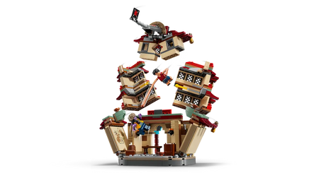 Il divertimento non si ferma mai con la Battaglia ad Arlong Park (75638)! I bambini possono far crollare il modello della pagoda semplicemente toccandolo sulla parte superiore, ricreando un'esplosione dinamica. Il tiro a segno offre bersagli divertenti da colpire con gli shooter, mentre il cattivo Arlong può essere posizionato trionfalmente su un trono all'interno dell'edificio dell'attacco degli squali. Non dimenticare Chu che può bere qualcosa nella baracca, e la foresta con la sua iconica bottiglia di ketchup!