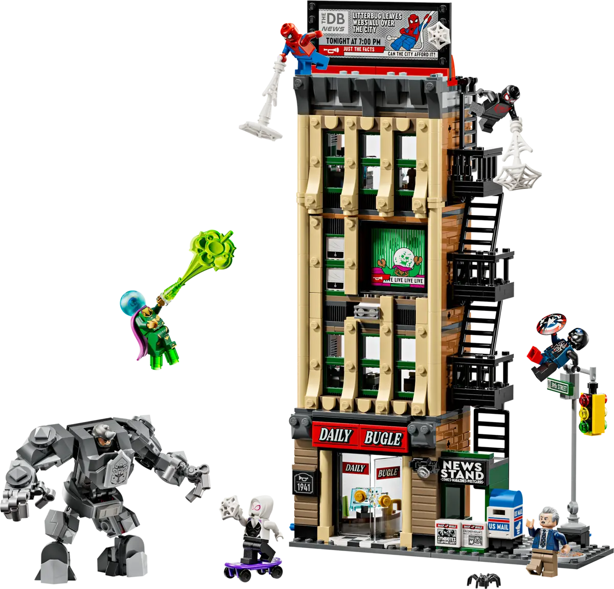 Scopri l'azione supereroica su 4 livelli con il set LEGO Marvel Spider-Man vs. Mysterio: il Daily Bugle! Perfetto per i giovani costruttori dai 10 anni in su, questo set collezionabile offre ore di divertimento creativo e di gioco immaginativo. Costruisci gli interni dettagliati della redazione, la reception e gli uffici, poi fai decollare l'azione con le 7 minifigure incluse: Spider-Man, Miles Morales, Ghost Spider, J. Jonah Jameson, Mysterio, Venomized Captain America e Rhino. Il mech di Rhino snodabile con cabina apribile aggiunge ancora più dinamismo al gioco, mentre i bastoncini e i mattoncini trasparenti permettono incredibili scene di volo. Un capolavoro da costruire e da esporre!