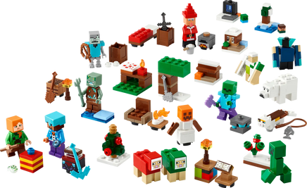 24 regali a tema Minecraft, tra minifigure, oggetti e piccoli modelli da costruire.